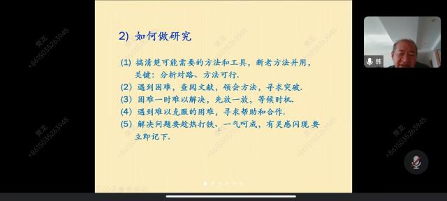 报告中,韩教授从个人教学经验出发,细致入微的分析了如何在教授过程中发现问题、整理问题、研究问题,进而形成论文成果,并通过个人发表的教学论文为例,为我院教师在如何开展教学研究、如何实施翻转课堂、如何撰写教学论文等方面提供了宝贵的参考方案和中肯的意见。报告持续了一个多小时,韩茂安教授与在线教师进行了积极的互动交流。