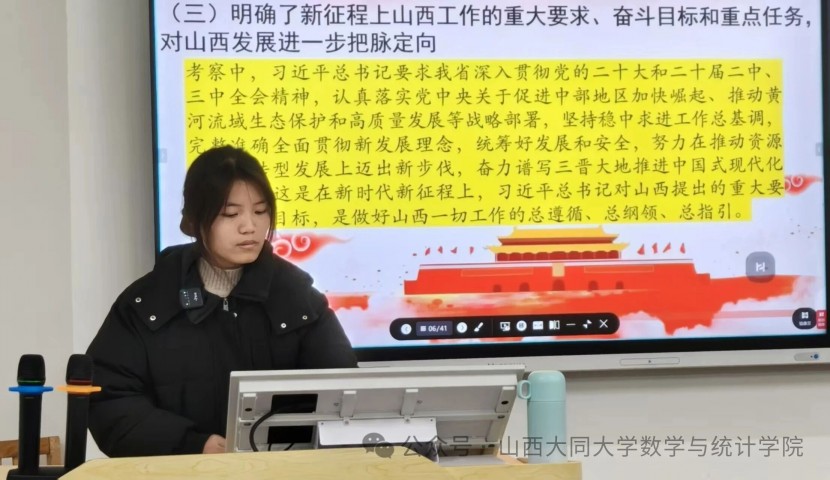 团课以领会习近平总书记考察山西重要讲话精神为切入点,紧扣山西转型发展、安全底线坚守、全面从严治党等关键领域,结合百团大战纪念馆红色底蕴、阳泉煤业转型实践等鲜活案例,深入解读讲话精神的丰富内涵与时代价值,为青年学子成长发展指明航向。临近尾声,主讲人通过分享青年榜样张桂芳扎根基层、深耕实干的先进事迹,寄语同学们“把个人理想种在国家发展的土壤里,才是青春最好的模样”,鼓励学子在强国建设赛道挺膺担当。
