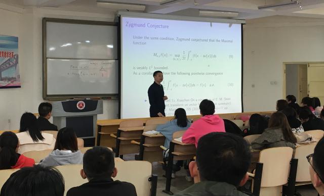 沿曲线的奇异积分算子的有界性是调和分析研究的一个重要问题,在偏微分方程、解析数论等领域都有广泛的应用。报告中,李俊峰教授首先介绍了沿曲线奇异积分算子有界性研究的基本问题,随后逐一讲解了个人近几年完成的有关带参数的沿一般曲线的奇异积分算子以及双线性算子有界性的结果。随后,李俊峰教授与在场师生进行了互动交流,对大家提出的问题进行了详细解答。